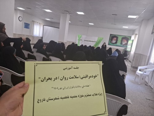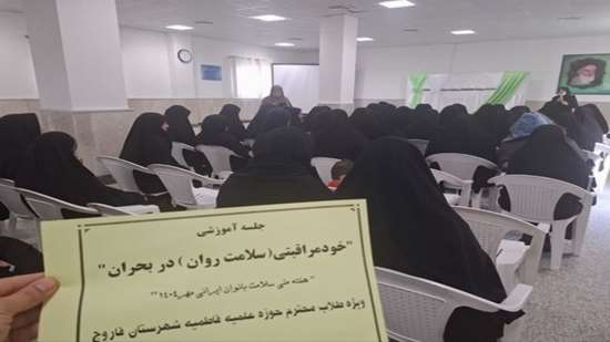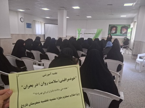 جلسه آموزشی خود مراقبتی (سلامت روان) در بحران ویژه هفته ملی سلامت بانوان در حوزه علمیه خواهران توسط کارشناس سلامت روان مرکز بهداشت برگزار گردید.